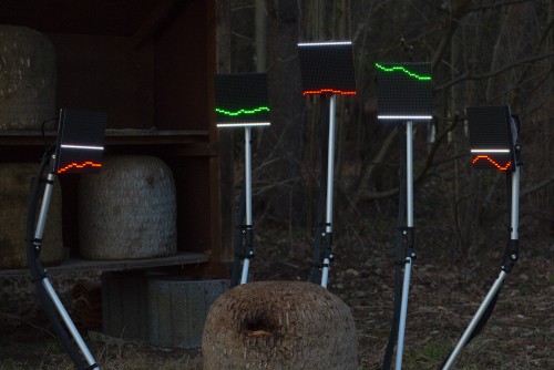 Fragmentin and Apian have designed a sculptural and performative device that highlights the brutality and absurdity of using these technologies in our current capitalist system. The sculpture, reminiscent of a mechanical hand, seems to close in on the hive positioned at its center. Certain details of the device refer to capturing elements such as a scale - one of the most used sensors in digital beekeeping - or even a measuring grid. At the top of each phalanx is an LED screen, reminiscent of stock market screens. The selection of materials contrasts with the natural context in which the performances were filmed, highlighting the absurdity of the current context while proposing a new hybrid aesthetic between nature and technology, suggesting another possible use for these technologies.